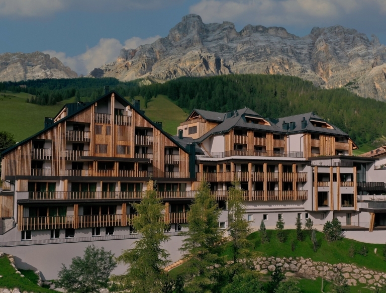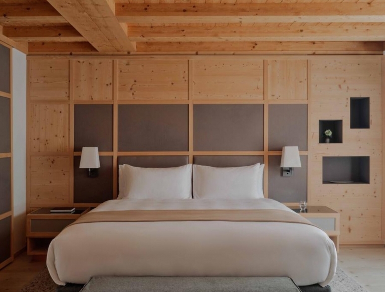 客房和套房的設計靈感源自於周圍環境的原始之美,大量運用木材和天然石材等天然材料,寬敞的陽台和落地窗將令人沉浸其中的山景盡收眼底,展現了多洛米蒂山脈的精髓。