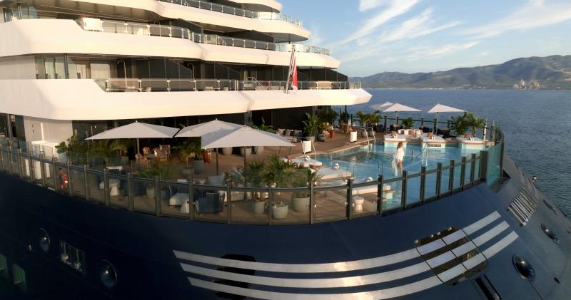 • 設有更多元的餐飲空間與更開闊的戶外甲板,包含全新設計的擴大海上平台與泳池區。