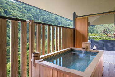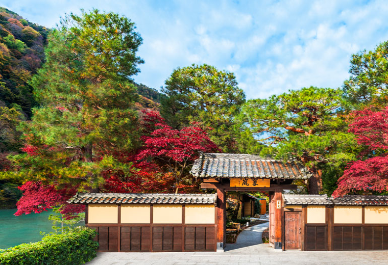 夜晚入宿「翠嵐」,傳統與現代交融的新飯店,任由泉水的溫潤洗滌飛行的疲憊。次日用過豐盛的早膳,起身前往嵐山。自平安時代,這兒便是皇宮貴族休憩之地。山腳下一座古色古香的「渡月橋」橫跨桂川,立於木造結構的橋面,遠眺是層疊有緻、秀麗婉約的嵐山,中景是蒼翠鬱蓊的綠樹,近一點是深邃幽靜的湖畔,倒映一黑一白一綠一藍,湖水山林天景融為一體。