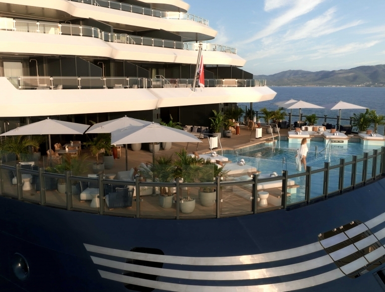 • 設有更多元的餐飲空間與更開闊的戶外甲板,包含全新設計的擴大海上平台與泳池區。